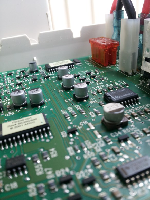 1) I was having issues with the microcontroller resetting when it displayed certain digits on the 7-segment displays. Ends up I had forgot to turn off brown out protection on the uC, and the current draw from the LED’s was pushing the main voltage below the default brown out level for the uC. This was easily remedied by adding some bulk capacitors and turning off brown out protection (not too important for this stripped down clock).