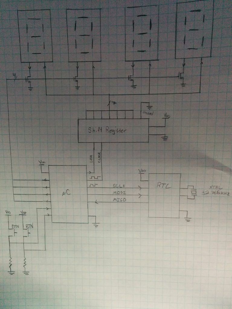 3) I was running into flash space issues with my code. I had created a interrupt that would run when the button was pressed, and the interrupt would update the time nicely as long as the button for it was held down. When I tried to compile this code, the XC16 compiler complained of too many nested if statements, and too little program memory; oops. I forgot about how compilers tend to unwrap while loops and if statements, which ended up taking most of my program space. I was able to circumvent this by simply having one complete button press as one increment of either the minutes or hours (depending on which button was pressed).